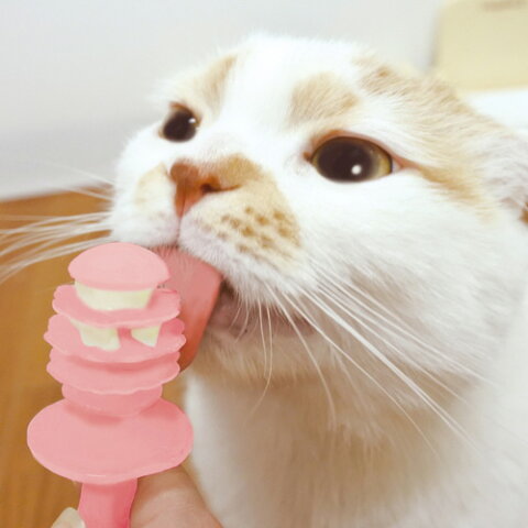 ・スティックは独自の複雑な形状で、じっくりペロペロしてくれるので、夢中でなめるかわいいお顔をながく楽しめます。